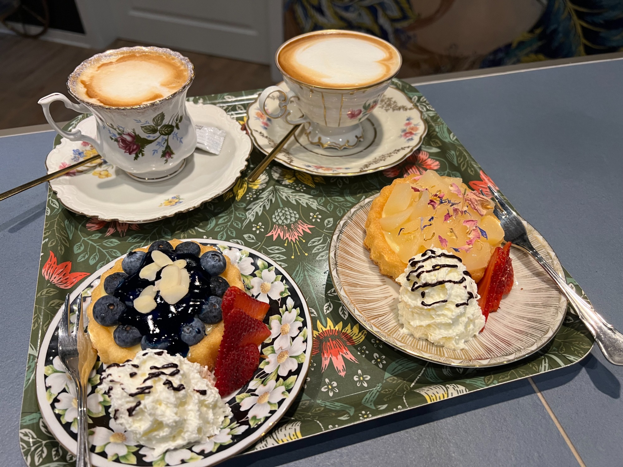 Bei uns gibt es immer etwas zu entdecken: frisch gebackene Kuchen – auch glutenfrei –, feine Torten, cremige Desserts und aromatischen Kaffee in bunten Sammeltassen. Jede Leckerei wird mit viel Liebe zubereitet und lädt zum Genießen ein. Ob ein gemütlicher Cappuccino, ein Stück hausgemachter Kuchen oder süße Kleinigkeiten für zwischendurch – hier findest du den perfekten Genussmoment.